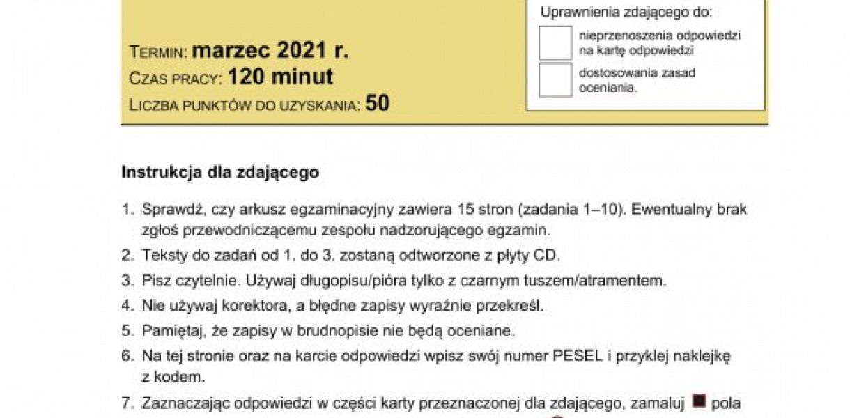 Poniżej publikujemy arkusze egzaminacyjne z j. angielskiego. W linku znajduje się nagranie audio do zadań ze słuchu.