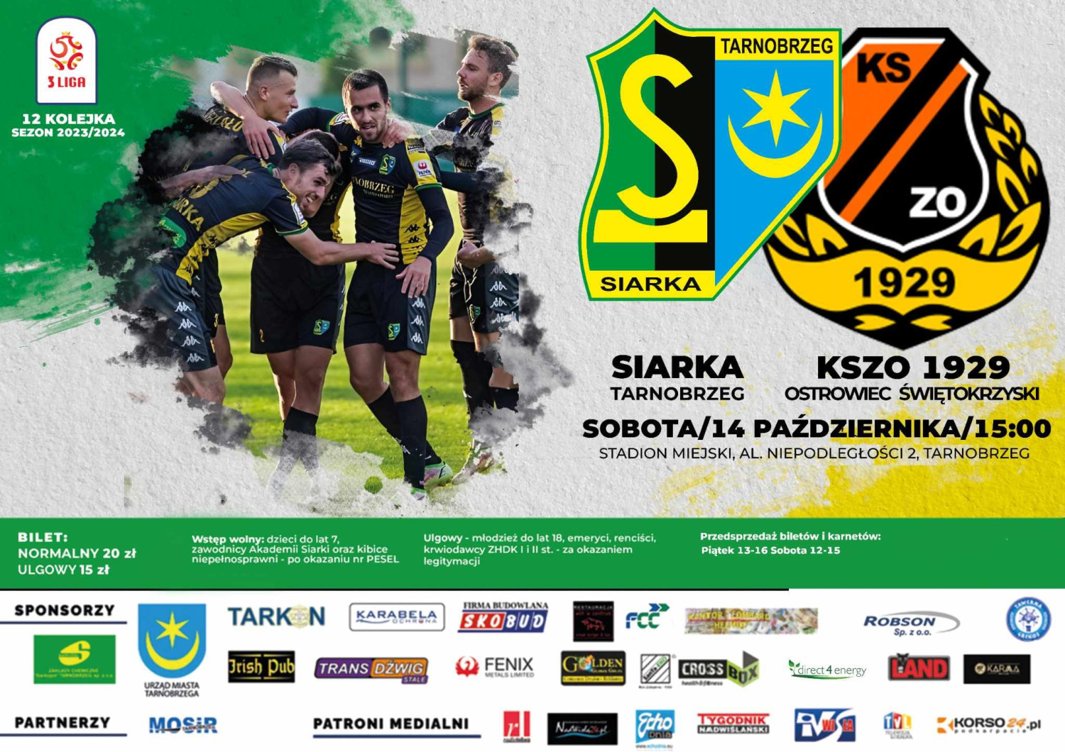 Mecz Siarka Tarnobrzeg – KSZO Ostrowiec Świętokrzyski rozpocznie się o godz. 15.