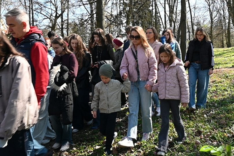 Wierni tłumnie wzięli udział w wielkopiątkowym nabożeństwie Drogi Krzyżowej w parku dzikowskim. Kolejne stacje Via Dolorosa ustawione zostały wzdłuż alejki wiodacej przez park wokół Zamku Tarnowskich.
