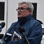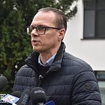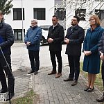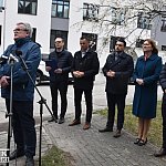 Konferencja posłów PiS przed Szpitalem Powiatowym w Nowej Dębie.