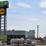 Budowa nowego parku handlowego w Sandomierzu wchodzi w ostatni etap. W pawilonach trwają prace wykończeniowe, a na budynkach oraz pylonie reklamowym pojawiły się pierwsze szyldy.
