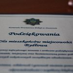 Pierwszy zastępca komendanta powiatowego Policji w Staszowie mł. insp. Dominik Małek przekazał dzisiaj na ręce sołtys miejscowości Bydłowa oraz burmistrza miasta i gminy Oleśnica podziękowania za zaangażowanie i pomoc w przeprowadzoną akcję poszukiwania zaginionej kobiety. Jak podkreślał, postawa osób zaangażowanych w działania jest przykładem solidarności i jedności lokalnej społeczności.