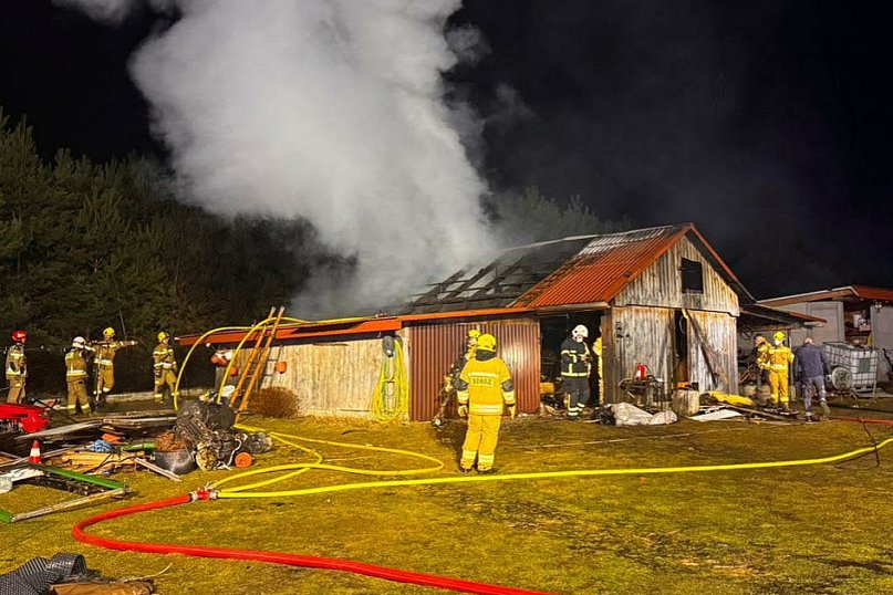 Sześć zastępów straży walczy z pożarem budynku gospodarczego, który wybuchł w poniedziałek wieczorem w miejscowości Łaziska w gminie Staszów.
