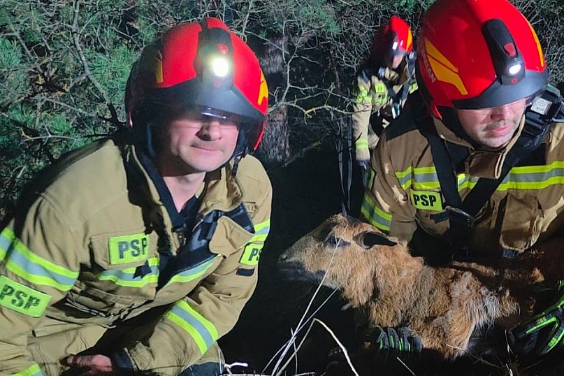 Nietypową interwencję przeprowadzili w sobotę strażacy z powiatu staszowskiego. Ratowali owcę, która utknęła na ścianie kamieniołomu w Smerdynie.