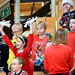 W hali MOSiR w Tarnobrzegu, na mikołajkowej imprezie, rywalizują uczniowie tarnobrzeskich szkół podstawowych.