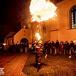 W Koprzywnicy tradycyjnie procesję rezurekcyjną oświetlały Bziuki - kilkumetrowe słupy ognia "wydmuchiwane" przez strażaków.