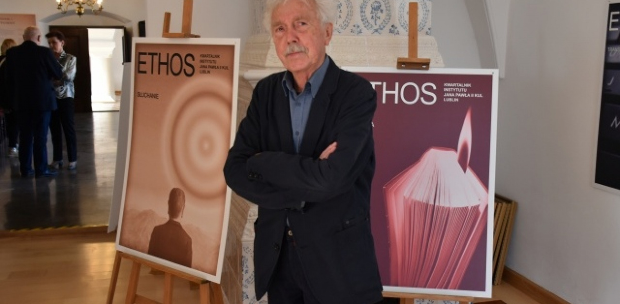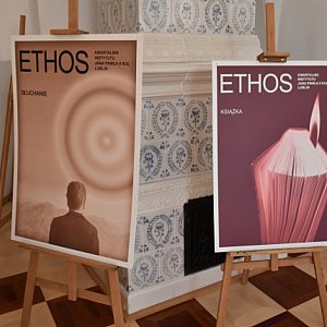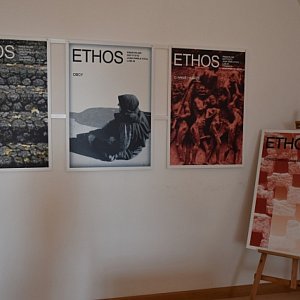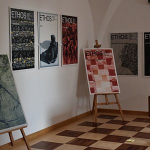W salach ekspozycyjnych sandomierskiego Ratusza prezentowane są powiększone do formy plakatu okładki, które Leszek Mądzik stworzył dla kwartalnika "Ethos", wydawanego od 1988 roku przez Instytut Jana Pawła II Katolickiego Uniwersytetu Lubelskiego. - Można powiedzieć, że są to plakaty. Wskazuje na to format, układ kompozycyjny i oszczędność tekstu - powiedział artysta.