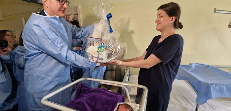 Julian, synek pani Klaudii z Sandomierza, jest pierwszym dzieckiem urodzonym w Szpitalu Specjalistycznym Ducha Świętego w 2026 roku. 1 stycznia na świat przyszło tam trzech chłopców. Dziś, w drugim dniu roku, noworodki wraz z mamami otrzymały upominki od władz powiatowych i gminnych.