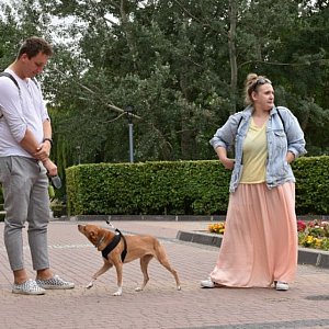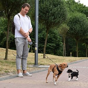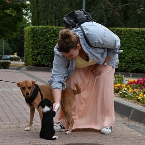 Pani Katarzyna wyprowadziła na spacer Szakala, psa swojej córki. Pochodzi on ze schroniska. Jak wspominała pomysłodawczyni festiwalu, były tam dwa duże psy - jeden miał rok, a Szakal 10 lat. Szanse starszego na adopcję, ze względu na wiek, były minimalne. - Moja córka wybrała go właśnie dlatego. Jest on z nami już drugi rok. Jest traktowany jak członek rodziny - dodała pomysłodawczyni akcji.