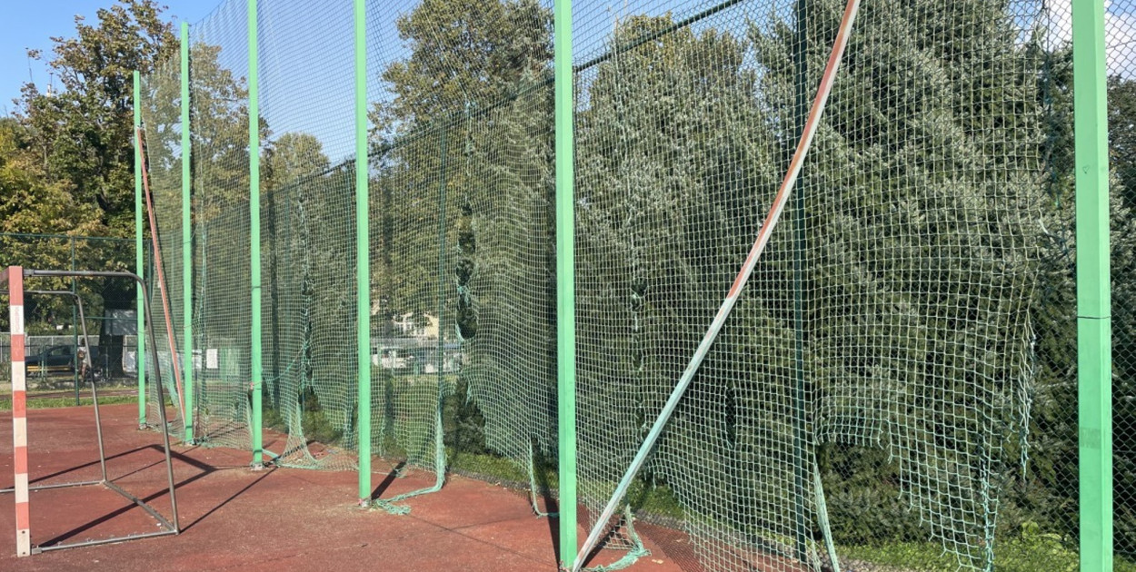 Robert Kurosz wymienia liczne usterki. Na terenie obu obiektów sportowych siatki w bramkach są albo zniszczone, albo w ogóle ich nie ma. Brakuje siatek na obręczach do koszykówki, a te służące do wychwytywania piłek są porwane. Na dużym boisku przy ulicy Adama Mickiewicza brakuje linii, nie ma ich także na połowie bieżni. Nawierzchnia części lekkoatletycznej jest zabrudzona. Ponadto przy wejściu na główne boisko zapadła się kostka brukowa.
