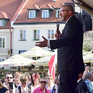 Grzegorz Braun mówił do sandomierzan, że jego program "w pigułce" to "trzy hasła: precz z komuną, precz z eurokomuną, precz z żydokomuną". Poniżej kilka cytatów z jego kilkudziesięciominutowego wystąpienia, podczas którego odpowiadał także na pytania.