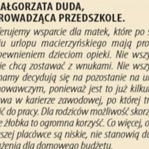 - Łączenie z sukcesem ról rodzinnych i zawodowych to jeden z ważnych priorytetów europejskich. By mógł być realizowany, potrzeba inwestowania we wczesną edukację, wyrównywanie szans edukacyjnych i opiekę nad małymi dziećmi. Dzięki Funduszom Europejskim możemy tworzyć dla nich nowe miejsca w żłobkach, a tym samym pomagać rodzicom w powrocie na rynek pracy - podkreśla Andrzej Bętkowski, marszałek województwa świętokrzyskiego.