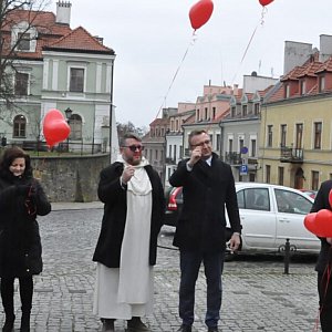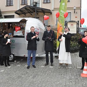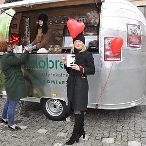 Na parkingu Hotelu Basztowy stanęła przyczepa - kapsuła Inkubatora Przetwórczego w Dwikozach. Mieściła się tam walentynkowa kawiarenka z gorącą kawą, aromatyczną herbatą i mnóstwem słodkości. Można było się nimi poczęstować w zamian za przekazanie dowolnej kwoty do puszki na rzecz sandomierskiego Przytuliska na Wiśniowej.