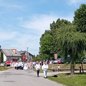 Trasa tegorocznej procesji prowadziła najpierw w kierunku cmentarza, a następnie drogą wśród pól uprawnych z powrotem na plac kościelny, gdzie przygotowany został ostatni z ołtarzy. Tam też, uroczystym odśpiewaniem Te Deum i błogosławieństwem Najświętszym Sakramentem, zakończyła się tegoroczna uroczystość Bożego Ciała.