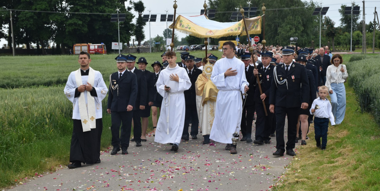 Trasa tegorocznej procesji, prowadzonej przez ks. Ryszarda Sałka i ks. Damiana Stalę, wiodła najpierw w kierunku cmentarza, a następnie drogą wśród pól uprawnych z powrotem na plac kościelny, gdzie przygotowany został ostatni z ołtarzy. Tam też, uroczystym odśpiewaniem Te Deum i błogosławieństwem Najświętszym Sakramentem, zakończyła się tegoroczna uroczystość Bożego Ciała.
