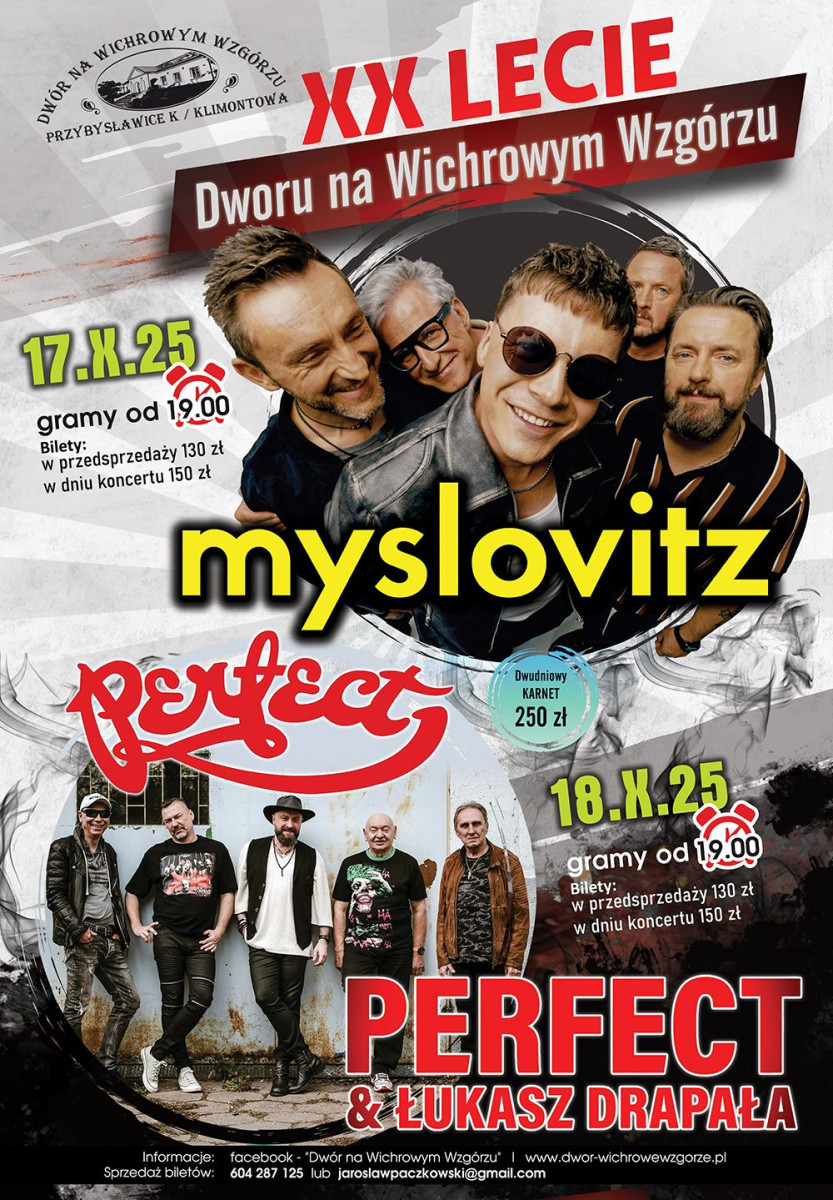 17 października na scenie pojawi się zespół Myslovitz, a dzień później legendarna grupa Perfect z nowym wokalistą, Łukaszem Drapałą. Początek koncertów o godzinie 19.