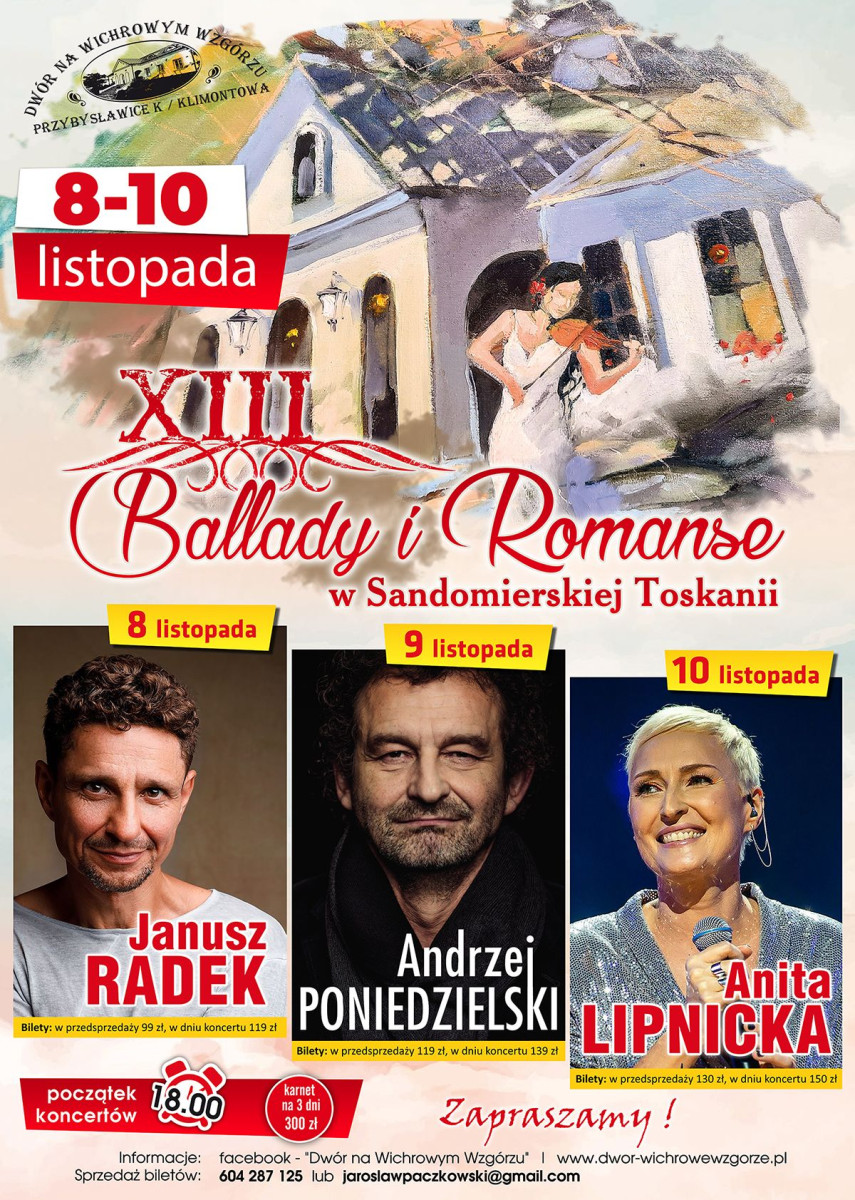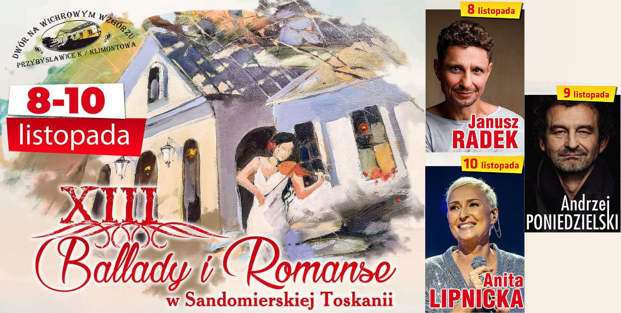 Dwór na Wichrowym Wzgórzu w Przybysławicach (gm. Klimontów) już po raz trzynasty zaprasza na wyjątkowe, nastrojowe spotkanie z muzyką i poezją. W dniach 8–10 listopada odbędzie się Festiwal Ballady i Romanse, znany jako jedno z najbardziej klimatycznych wydarzeń w Sandomierskiej Toskanii.