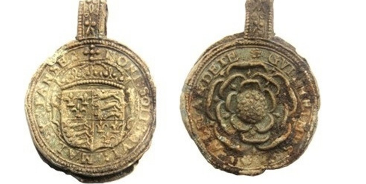 – Plomba składa się z dwóch połączonych ze sobą okrągłych tarczek. Na awersie znajduje się tarcza z herbem królewskim Anglii używanym w latach 1406–1603: w lewym górnym i prawym dolnym polu – trzy lilie; w prawym górnym i lewym dolnym polu – trzy lamparty zwrócone w lewo; ponad tarczą widnieje korona zamknięta, zwieńczona krzyżem. W otoku widnieje napis w języku starofrancuskim: HONI SOIT QVI MAL Y PANSE, w wolnym tłumaczeniu „Hańba temu, kto źle o tym myśli”. Jest to dewiza Orderu Podwiązki, ustanowionego w 1348 roku przez króla Edwarda III. Na rewersie w centrum znajduje się przedstawienie tzw. Róży Tudorów – herbu rodu Tudorów, dynastii panującej w Anglii w latach 1485–1603, zaś w otoku napis: ALMANDSTE GVILHELMUS, czyli Wilhelm Niemiec, odnoszące się zapewne do kupca handlującego suknem – opisuje przedmiot dr hab. Marek Florek, archeolog z WUOZ.
