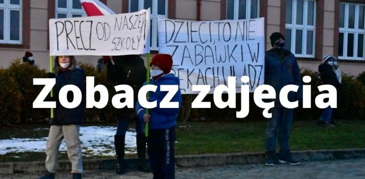 Przed budynkiem szkoły zgromadziło się ponad stu rodziców. Były również dzieci. Uczestnicy protestu przynieśli transparenty z hasłami, między innymi: "Precz od naszej szkoły!" "Dzieci to nie zabawki w rękach władz", "Nie odbieraj nam tego, co budowaliśmy 100 lat" oraz "Szkoła z przeszłością i przyszłością niszczona teraźniejszością". Ustawione były taczki z kukiełką Pinokia.