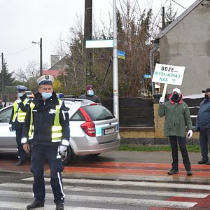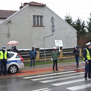 Policjanci ruchu drogowego obstawili przejście dla pieszych, na którym odbywał się protest. Jeden z nich wyszedł na jezdnię i zaczął kierować ruchem - tak, by przejazd samochodów był w miarę płynny, ale też by i protestujący mogli przechodzić bezpiecznie przez jezdnię.