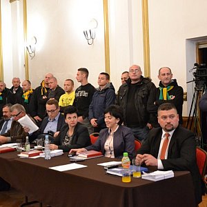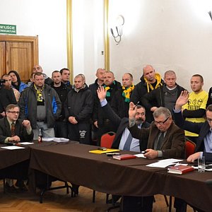 Kilkudziesięcioosobowa grupa kibiców Siarki Tarnobrzeg pojawiła się na czwartkowej sesji Rady Miasta. Przyszli zaapelować od radnych i prezydenta, aby nie odwracali się od klubu w trudnych dla niego chwilach.