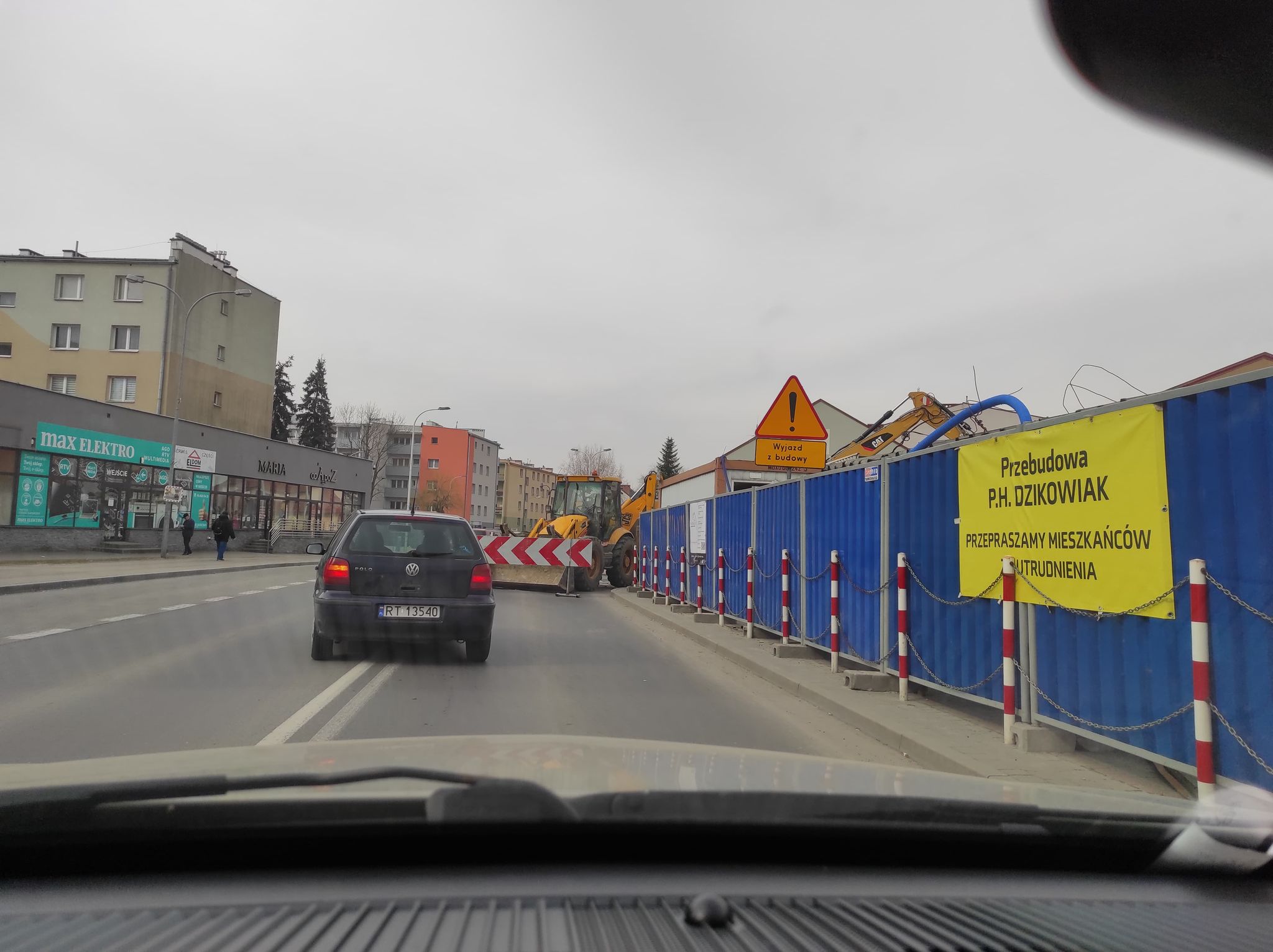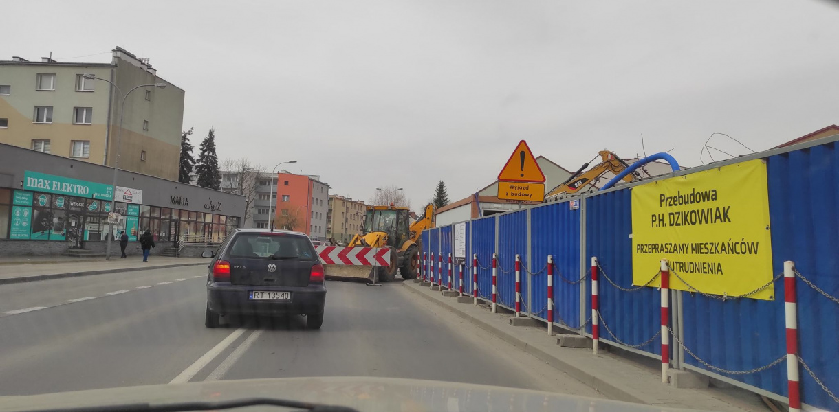Trwa budowa nowego pawilonu handlowo - usługowego w centrum Tarnobrzega. Dziś w okolicach "Dzikowiaka" kierowcy mogą napotkać utrudnienia związane z pracami ziemnymi.