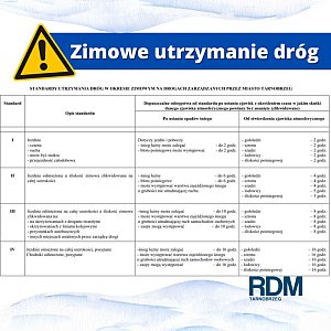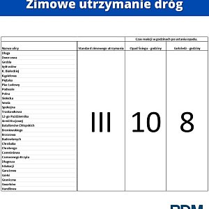 Spółka w swoim komunikacie zaznacza jednak, że "RDM pracuje cały czas i odśnieża na bieżąco, jednak w czasie ciągłych opadów mamy określone maksymalne odstępstwa od standardowego utrzymania dróg, które są określone w legendzie i przypisane do każdej kategorii drogi."