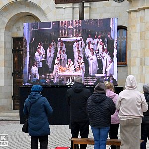 Sanktuarium, czyli kościół dominikański pw. Wniebowzięcia NMP, nie pomieściło wszystkich pątników, część z nich modliła się przed kościołem, mając jednak ogląd tego, co dzieje się w świątyni na wielkich telebimach.
