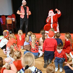 W końcu marzenie dzieci się spełniło, a bohater wieczoru wkroczył na salę. Szybko ustawiła się do niego długa kolejka chętnych do odebrania prezentu i zrobienia sobie z nim pamiątkowego zdjęcia.