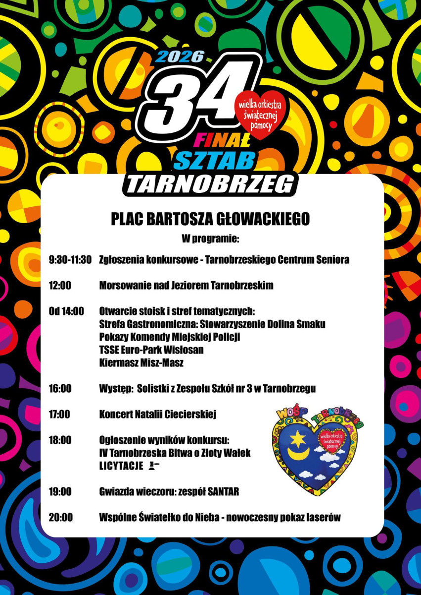 Sztab Tarnobrzeg ogłosił oficjalny program 34. Finału Wielkiej Orkiestry Świątecznej Pomocy w 2026 roku.
