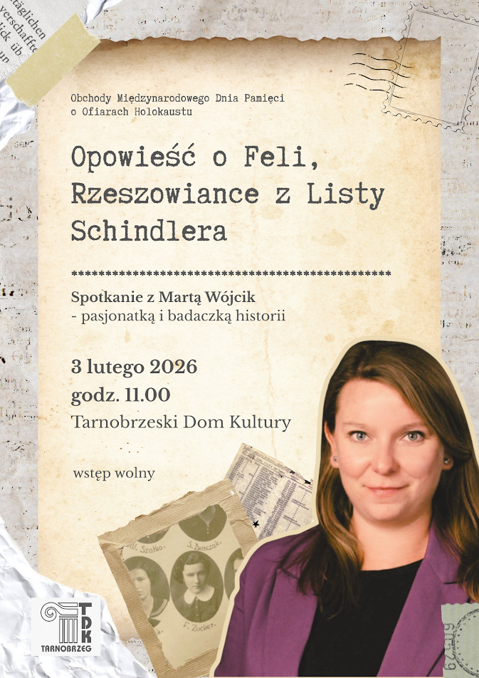 W Tarnobrzeskim Domu Kultury odbędzie się wyjątkowe spotkanie poświęcone pamięci ofiar Holokaustu i losom jednej z nich – młodej rzeszowianki, której życie splata się z historią Oskara Schindlera.