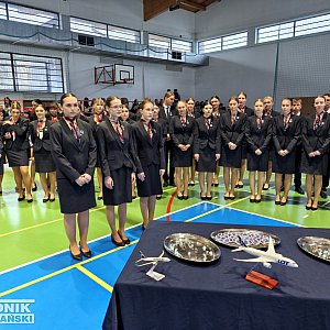 W obecnym roku szkolnym naukę na kierunku Technik Obsługi Pasażerów w przewozach lotniczych, morskich i lądowych, podjęło 61 uczennic i uczniów. Cała ta grupa, wyróżniająca się umundurowaniem, złożyła uroczyste ślubowanie i otrzymała z rąk zastępcy prezydenta Tarnobrzega Kamila Kalinki i dyrektora szkoły Marcina Pilarskiego szkolne odznaki.
