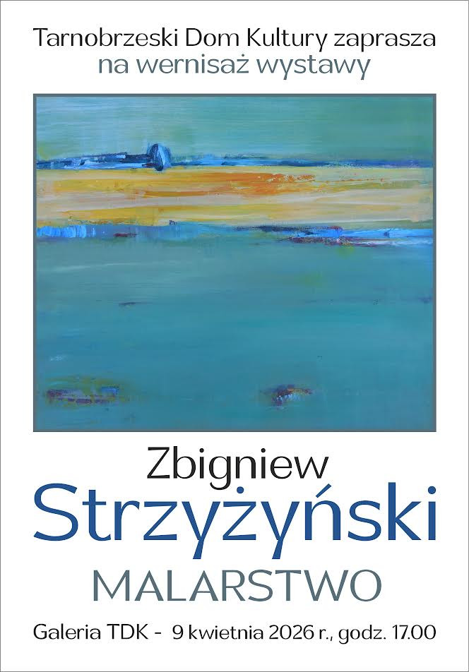 Wystawę prac Zbigniewa Strzyżyńskiego w Galerii TDK można będzie oglądać do połowy maja. Wernisaż odbędzie się 9 kwietnia o godz. 17.00 w Tarnobrzeskim Domu Kultury. Wstęp jest wolny.