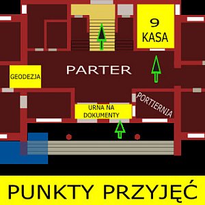 Wszelkiego rodzaju dokumenty można składać do urny zlokalizowanej za głównymi drzwiami wejściowymi w holu budynku z wyjątkiem spraw związanych z rejestracją pojazdu i prawami jazdy. Dokumenty te składamy po uprzednim uzgodnieniu z pracownikami Wydziału Komunikacji).