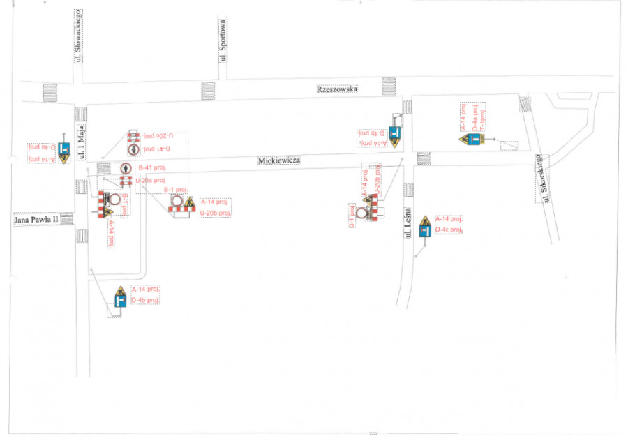 Na czas prowadzenia prac wprowadzono tymczasową organizację ruchu zgodnie z zatwierdzonym projektem. Oznacza to całkowite wyłączenie z ruchu. Kierowcy powinni korzystać z wyznaczonych objazdów i zwracać uwagę na oznakowanie w rejonie prowadzonych robót.
