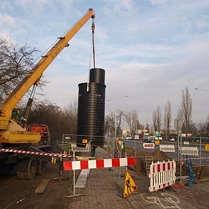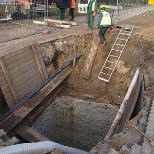 Tutaj ekipa Miejskiego Zakładu Komunalnego w Stalowej Woli przy współpracy wyspecjalizowanych firm, m.in. PRI Nisko, "walczy" z poważną awarią, jaka związana jest z częściowym zawaleniem się kolektora sanitarnego przy ul. Staszica w Stalowej Woli, odprowadzającego ścieki m.in. z os. Hutnik oraz z Zatorza. Prace są bardzo skomplikowane m.in. z tego powodu, że dla umożliwienia drożności kolektora konieczne stało się wykonanie "bajpasa" omijającego uszkodzony odcinek. To wymagało poważnych robót ziemnych w sąsiedztwie budynku LO im. KEN. Wszystkie te roboty wykonywane są tak, aby nie ograniczać w tym miejscu normalnego ruchu kołowego oraz funkcjonowania ważnego przejścia pieszo-rowerowego w sąsiedztwie dużej szkoły i szpitala. Utrudnienia w ruchu w związku z tymi pracami są, ale nie są one powodem dużych perturbacji. Ponadto część prac musi być wykonywana aż na głębokości sięgającej 7 metrów, bo tak głęboko osadzone są instalacje kanalizacyjne, w bezpośrednim sąsiedztwie których przebiegają także inne elementy infrastruktury technicznej, w tym magistrala ciepłownicza, instalacje elektryczne itp. Na szczęście do połowy grudnia robót nie utrudniała pogoda, nie było ani opadów deszczu, ani mrozów.