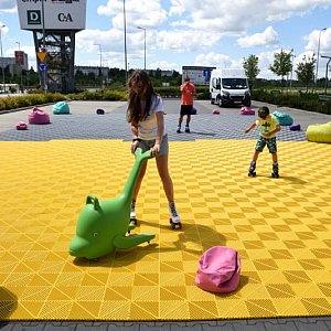 Każdy może również bezpłatnie wypożyczyć regulowane wrotki, kask i ochraniacze, a także skorzystać z cyklicznie organizowanych gier i zabaw prowadzonych przez wykwalifikowanych animatorów.