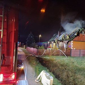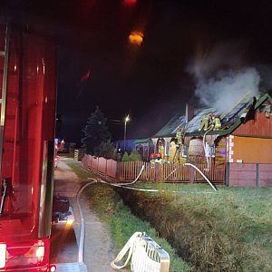 - Pożarem objęte było poddasze domu. Działania zastępów polegały na zabezpieczeniu miejsca zdarzenia, oświetleniu terenu działań oraz podaniu trzech prądów wody na palące się poddasze. Po ugaszeniu ognia przystąpiono do usunięcia nadpalonych elementów konstrukcji dachu oraz powały z jednoczesnym przelewaniem ich wodą. Pogorzelisko sprawdzono kamerą termowizyjną na obecność ukrytych zarzewi ognia oraz miernikiem wielogazowym na obecność gazów niebezpiecznych - relacjonuje mł. bryg. Jarosław Juszczyk.