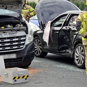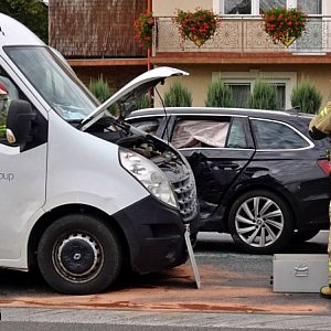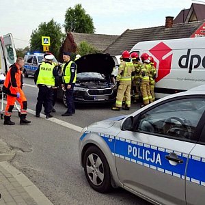 Na drodze krajowej nr 77 w miejscowości Trześń (gmina Gorzyce) doszło do zderzenia samochodu osobowego oraz busa dostawczego.
