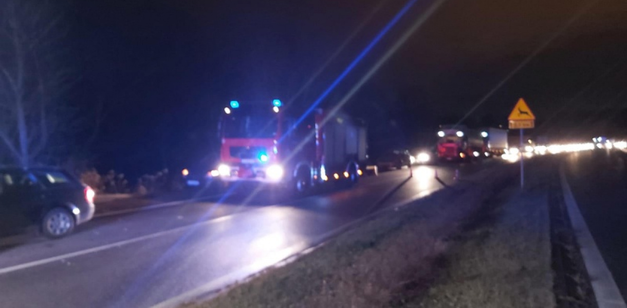 Według relacji świadków potrącona kobieta nie tylko przechodziła przez drogę w miejscu, w którym nie powinna tego robić, ale także nie miała na sobie żadnych elementów odblaskowych. Zanim na miejsce dojechała karetka pomocy poszkodowanej udzielali strażacy. Kobietę przewieziono do szpitala. Jej stan określono, jako ciężki. Przez dłuższy czas pas Wisłostrady w stronę Mielca był zablokowany. Fot. Tarnobrzeg 112 - Ratownictwo Powiatu Tarnobrzeskiego
