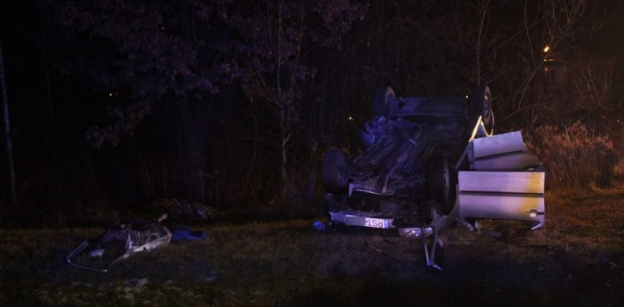 O zdarzeniu w Krawcach służby zostały poinformowane o godz. 21:15. Ze wstępnych ustaleń wynika, iż volkswagen polo uderzył w betonowe bariery i dachował w kanale. Za kierownicą pojazdu był 30-letni mężczyzna, który został wyciągnięty z wody. Poszkodowanemu udzielona została pierwsza pomoc i został przetransportowany do szpitala.