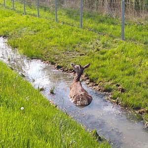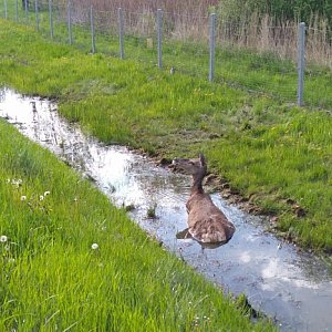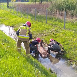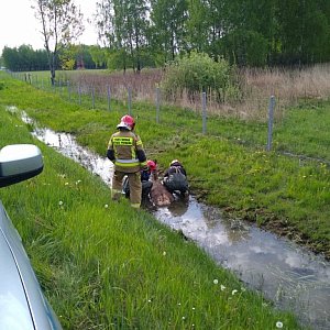 Strażacy wyciągali z rowu w przy krajowej "9" dużą łanię - 7 zdjęć