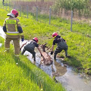 Do nietypowej interwencji zostali dziś wezwani tarnobrzescy strażacy. Przy drodze krajowej nr 9 w rowie utknęła łania. Strażacy pomogli jej stamtąd wyjść.