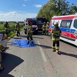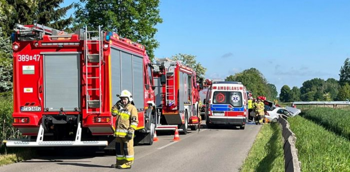 Droga jest całkowicie zablokowana. Poniżej publikujemy pierwsze zdjęcia z miejsca wypadku. Fot. Tarnobrzeg 112 - Ratownictwo Powiatu Tarnobrzeskiego, PSP Tarnobrzeg - asp.sztab. Mateusz Wdowiak