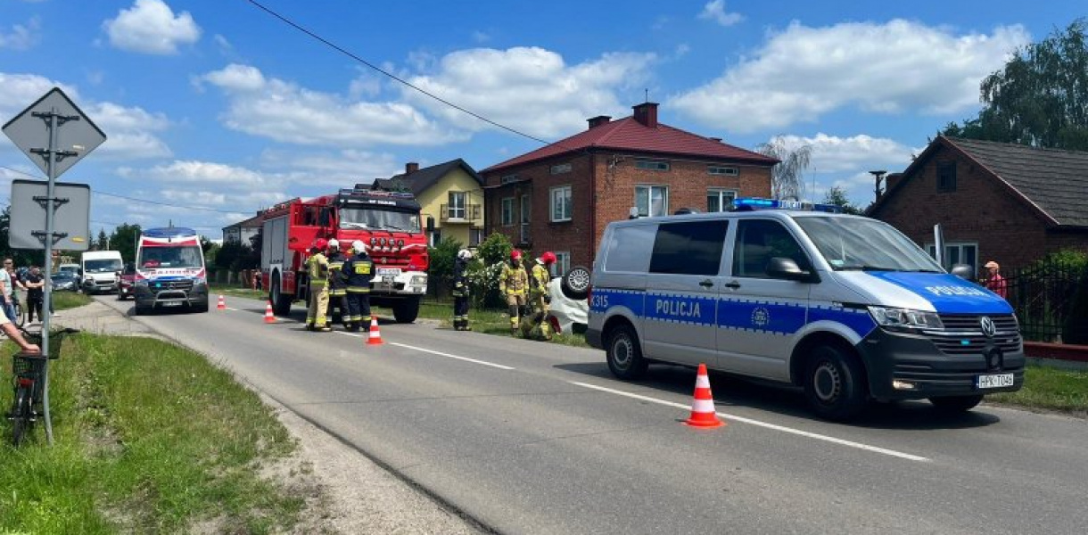 Na ul. Sandomierskiej w miejscowości Sokolniki (gmina Gorzyce) miało miejsce groźnie wyglądające dachowanie samochodu osobowego.