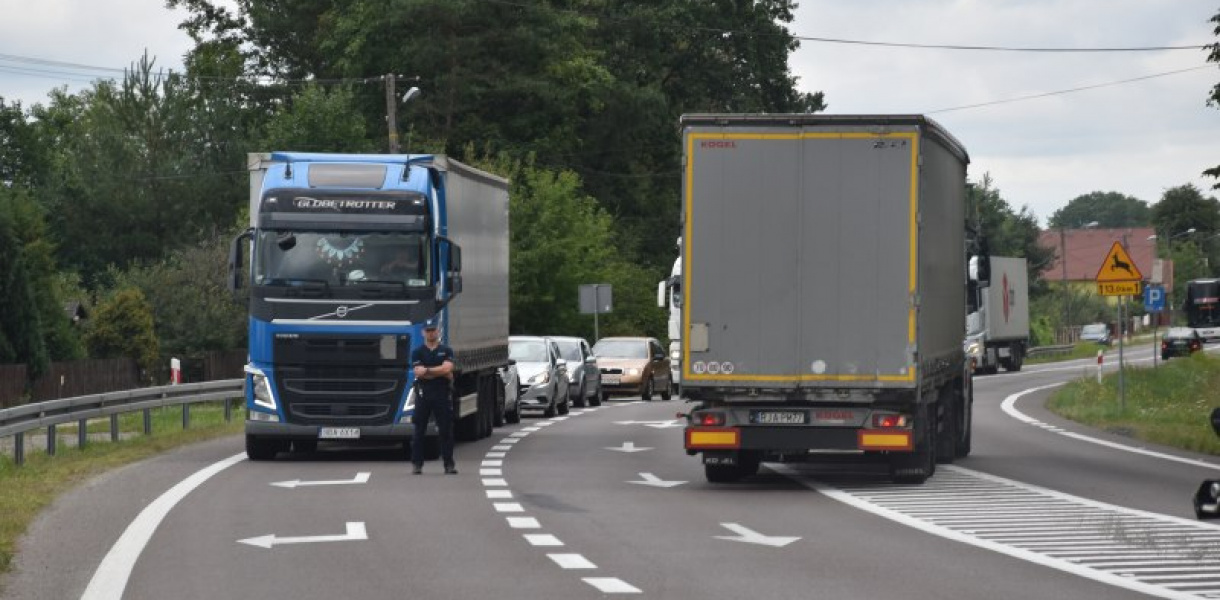 Na miejscu pracuje policja. Ruch odbywa się wahadłowo.