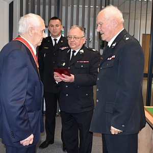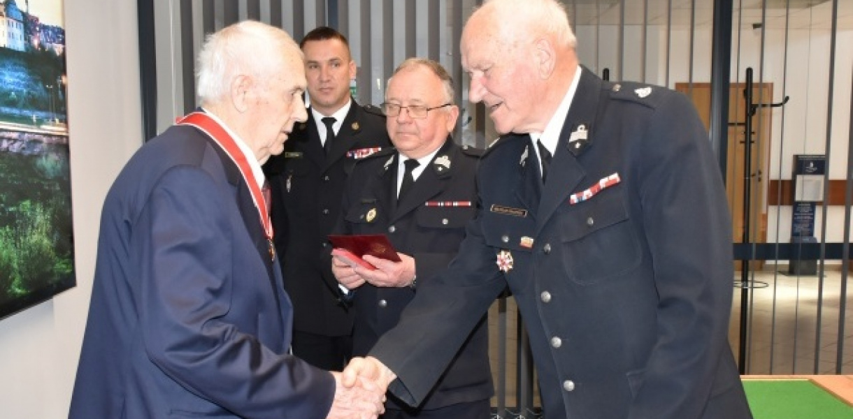 Roman Kwiatkowski, 90-letni druh z Wysiadłowa w gminie Wilczyce, otrzymał Złoty Znak we wtorek, 18 października, w Komendzie Powiatowej Państwowej Straży Pożarnej w Sandomierzu. Wręczyli go: wiceprezes Zarządu Oddziału Wojewódzkiego ZOSP RP druh Bolesław Gradziński, prezes Oddziału Zarządu Powiatowego ZOSP RP w Sandomierzu druh Szymon Kołacz oraz komendant powiatowy PSP mł. bryg. Piotr Krytusa.