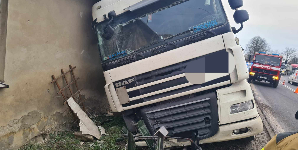 – Kierujący pojazdem ciężarowym marki daf 38-letni mężczyzna z województwa lubelskiego, poruszając się drogą krajową nr 79 w kierunku Ożarowa stracił panowanie nad pojazdem po czym zjechał na chodnik, a następnie uderzył w budynek mieszkalny – informuje Katarzyna Czesna – Wójcik, oficer prasowy Komendy Powiatowej Policji w Opatowie.