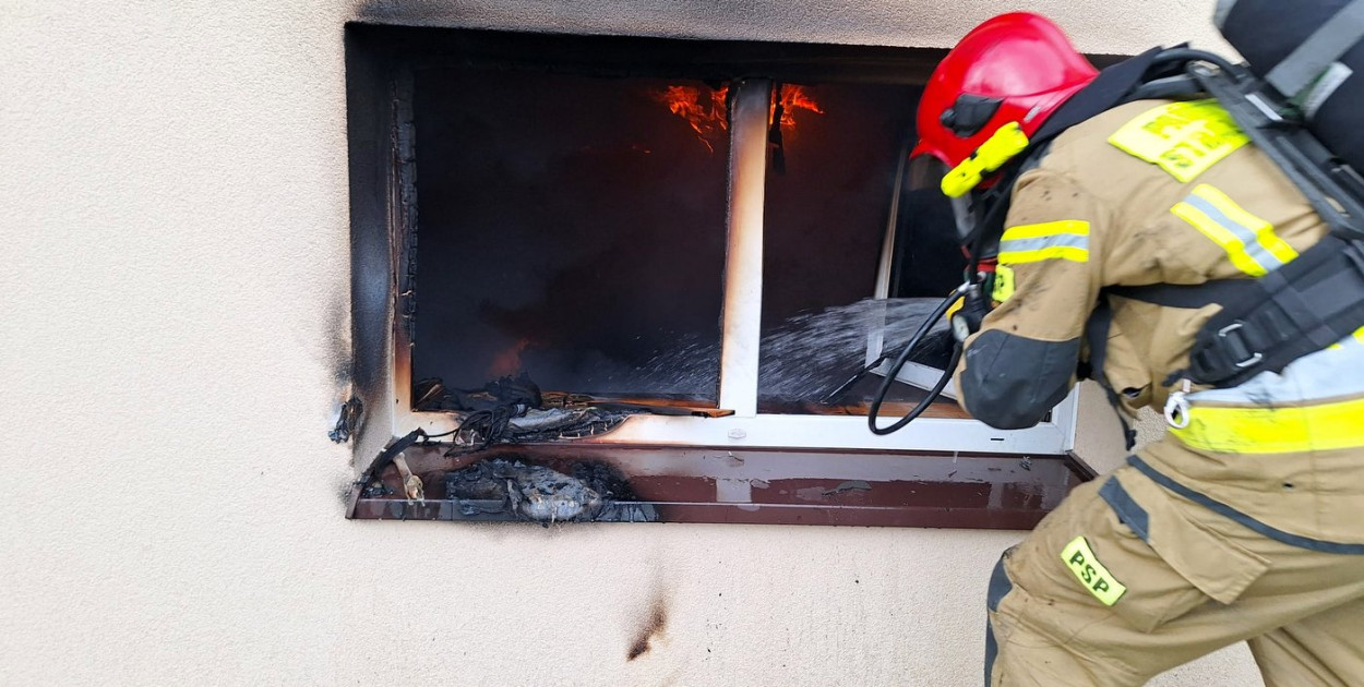 Z pomieszczenia w którym wybuchł pożar strażacy ewakuowali mężczyznę. Niestety nie udało się uratować mu życia.