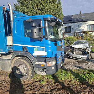 – W miejscowości Grzybów zderzyły się dwa pojazdy: skoda fabia i ciężarowa scania-śmieciarka. Ze zgłoszenia, które otrzymaliśmy wynika, że dwie osoby zostały ranne. Były przytomne, wyszły o własnych siłach z pojazdów - zaznacza J. Szczepaniak.